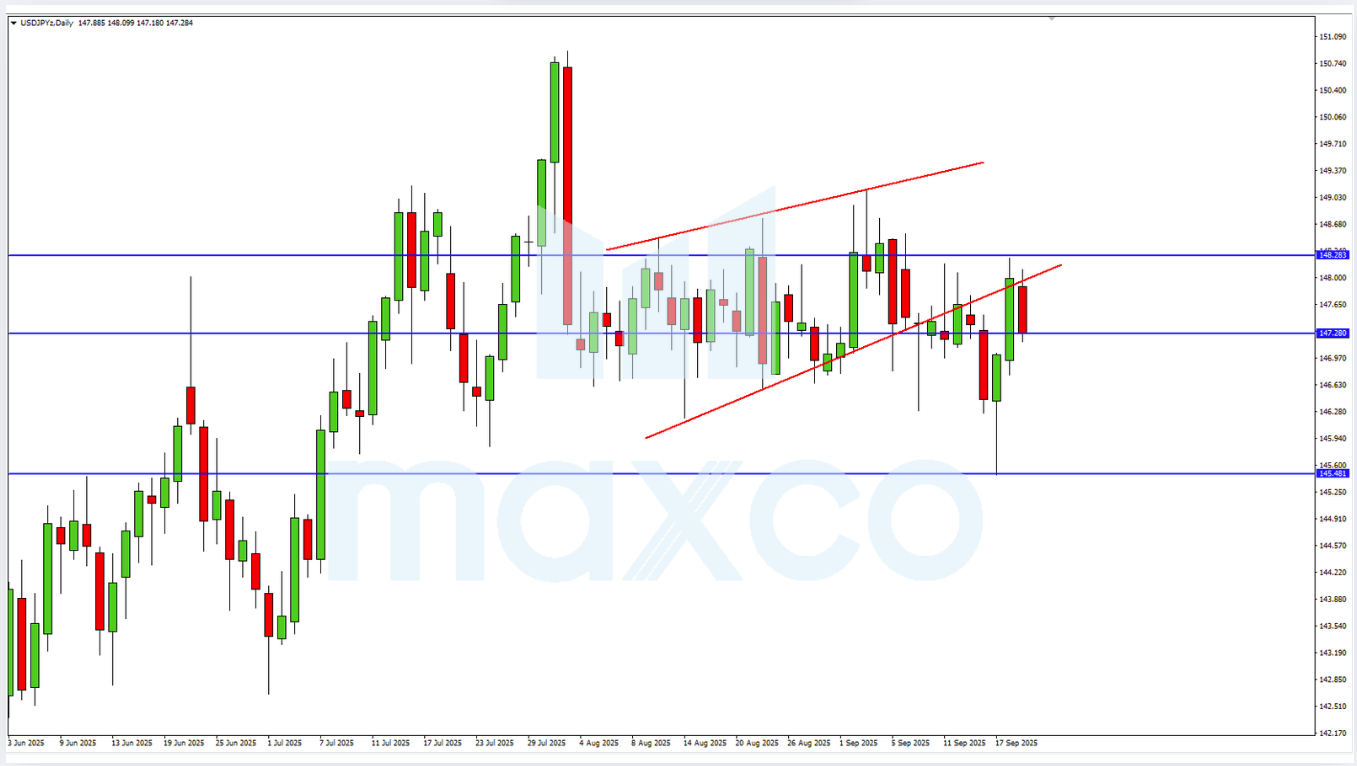 The current outlook for EURJPY suggests a bearish bias. This potential downside is reinforced by the formation of a swing high and the presence of a downtrend line, indicating that the probability of further decline remains strong. Trading Recommendation: *DISCLAIMER: All content in daily forex news is informative. PT. Maxco Futures does not guarantee its accuracy and completeness. […]
