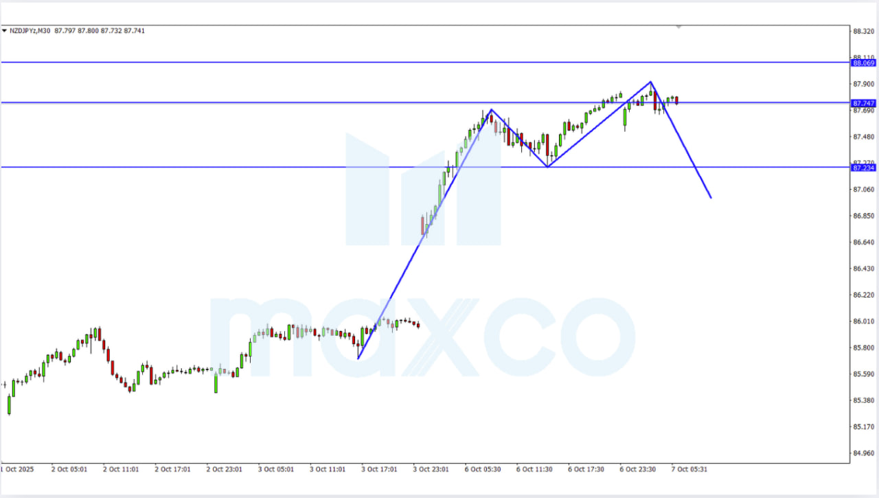 Prediksi untuk NZDJPY saat ini menunjukkan harga cenderung melemah. Skenario bearish ini didukung dengan terbentuknya chart pattern double top serta konfirmasi candlestick pattern, yang menandakan adanya potensi penurunan lanjutan. Rekomendasi Trading:Sell NZDJPYEntry : 86.276Take Profit : 86.063Stoploss : 86.437 *DISCLAIMER: Seluruh konten dalam berita forex harian ini bersifat informatif. PT. Maxco Futures tidak menjamin keakuratan dan kelengkapannya. Perusahaan […]