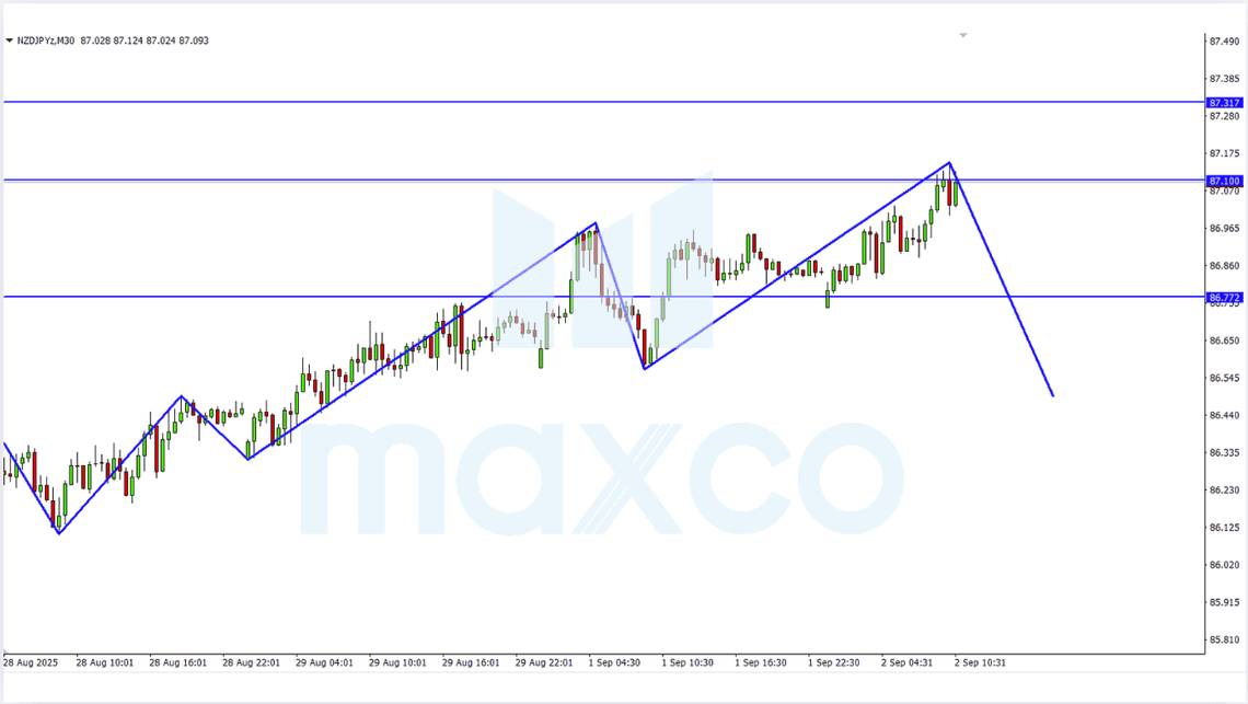 Prediksi untuk NZD/JPY saat ini menunjukkan kecenderungan harga untuk menurun. Potensi pelemahan ini didukung oleh adanya konfirmasi candlestick bearish, terbentuknya swing high, serta perubahan arah tren dari kenaikan menuju penurunan. Faktor-faktor teknikal ini membuka peluang penurunan yang cukup signifikan dalam waktu dekat. Rekomendasi: *DISCLAIMER: Seluruh konten dalam berita forex harian ini bersifat informatif. PT. Maxco Futures tidak menjamin keakuratan dan kelengkapannya. Perusahaan tidak […]