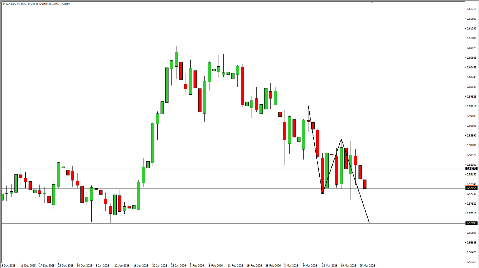 Gambaran Teknikal Pergerakan NZD/USD saat ini menunjukkan potensi pelemahan lanjutan, dengan indikasi menuju pembentukan kembali primary downtrend. Hal ini terlihat dari beberapa faktor teknikal penting: Kondisi ini mengindikasikan bahwa tekanan jual (seller) masih mendominasi pasar. Selama struktur bearish ini tetap terjaga, maka peluang penurunan lanjutan masih terbuka menuju area support berikutnya. Gambaran Fundamental Dari sisi […]