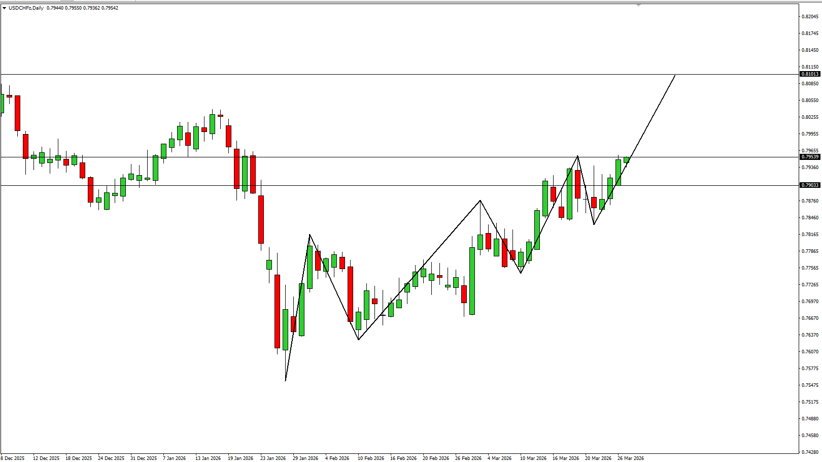 Gambaran Teknikal Pergerakan USD/CHF saat ini menunjukkan potensi kelanjutan tren bullish yang cukup solid. Harga terlihat telah menyelesaikan fase secondary trend (koreksi) dan kembali melanjutkan primary trend utama, yang mengindikasikan dominasi buyer masih kuat. Saat ini, harga berada dalam fase krusial dengan potensi: Jika breakout terkonfirmasi secara valid, maka peluang kenaikan lanjutan menuju area resistance […]