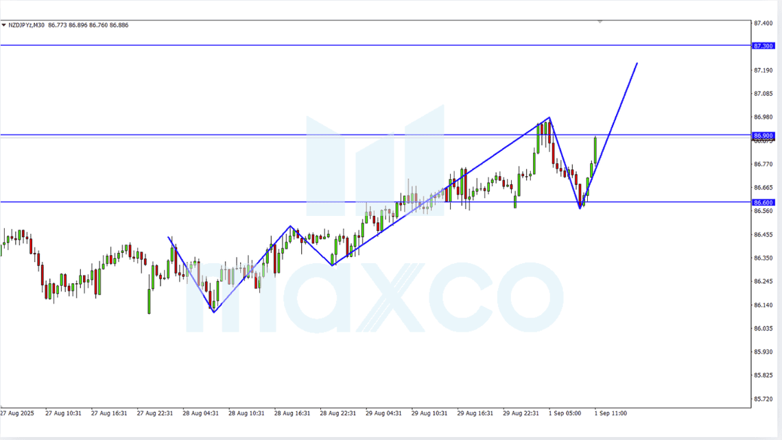 The NZD/JPY pair is currently expected to move higher and continue its upward momentum. This bullish outlook is supported by the formation of a swing low along with candlestick confirmation, both indicating potential for further gains. With these technical signals, the short-term outlook for NZD/JPY remains favorable for buyers. Recommendation: *DISCLAIMER: All content in daily forex news is informative. PT. Maxco Futures does not guarantee […]